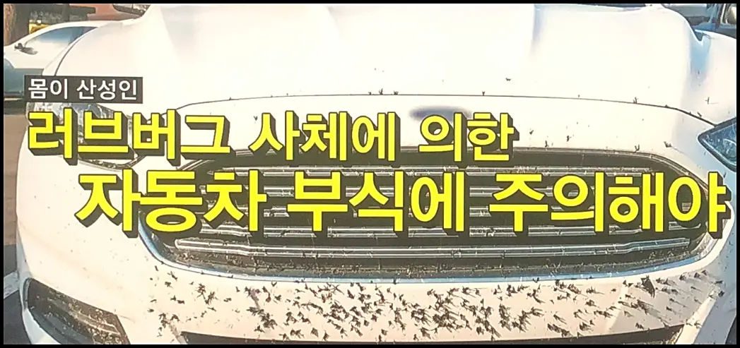 러브버그는 산성의 성질을 가지고 있어 세차를 하지 않고 그냥 둔다면 차량 부식의 원인이 될 수 있다고 하니 주의하시기 바랍니다.