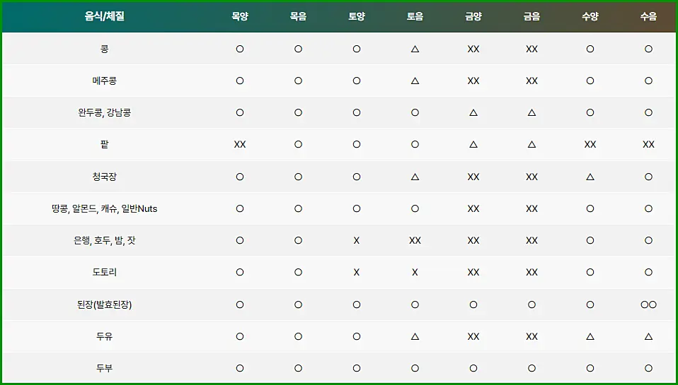 👇 8체질 섭생표 예시입니다 👇